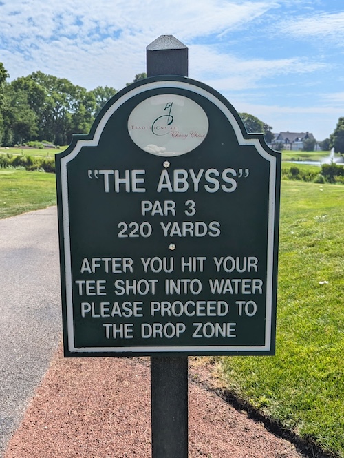 This 9-hole executive-length course (2,400 yards) is owned by Crystal Woods across the street. There’s a healthy amount of water to avoid, including the island green 3rd hole.